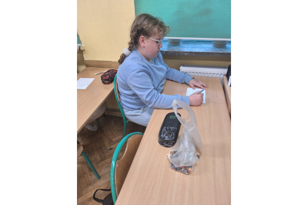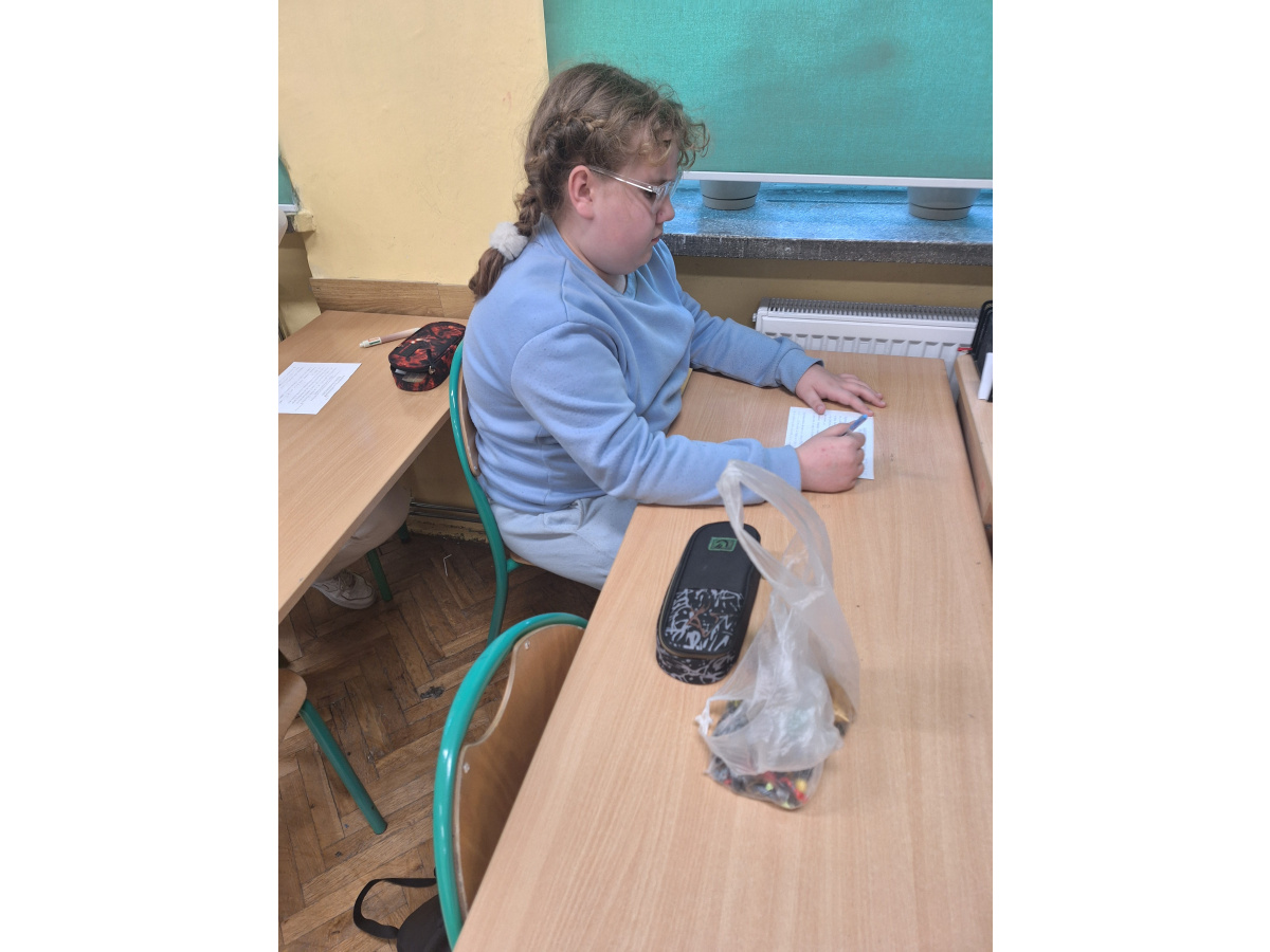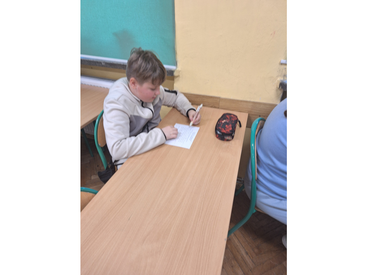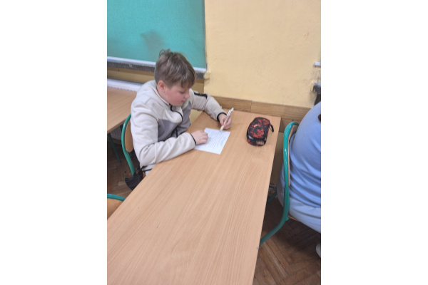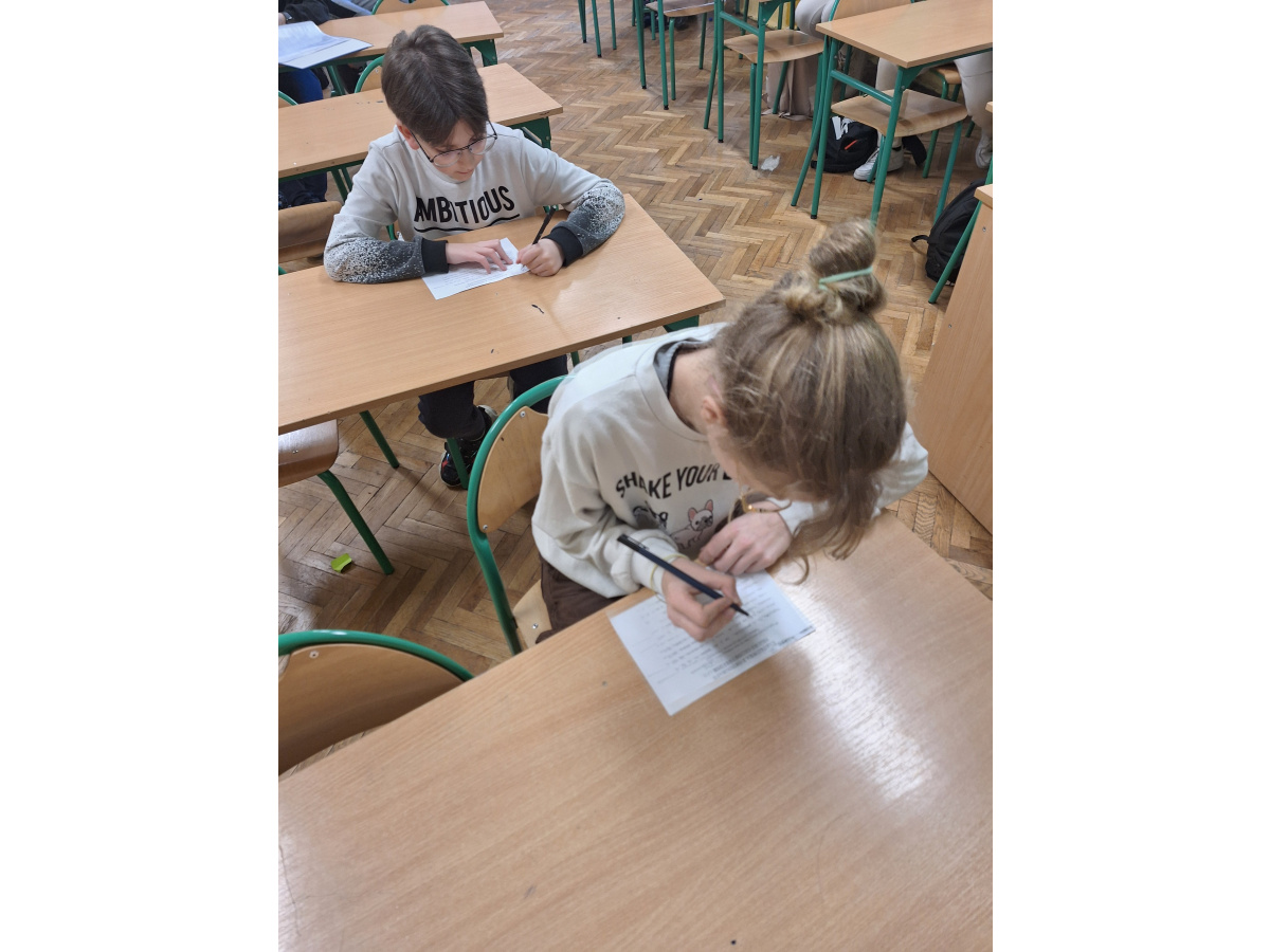 W ramach Tygodnia Szalonej Matmy w poniedziałek odbył się konkurs ortograficzny. Zainteresowani uczniowie rozwijali sprawność w poprawnym pisaniu tekstu o treści matematycznej. Uczestnicy próbowali poprawnie napisać słowa: kształt, romb czy przekątna.