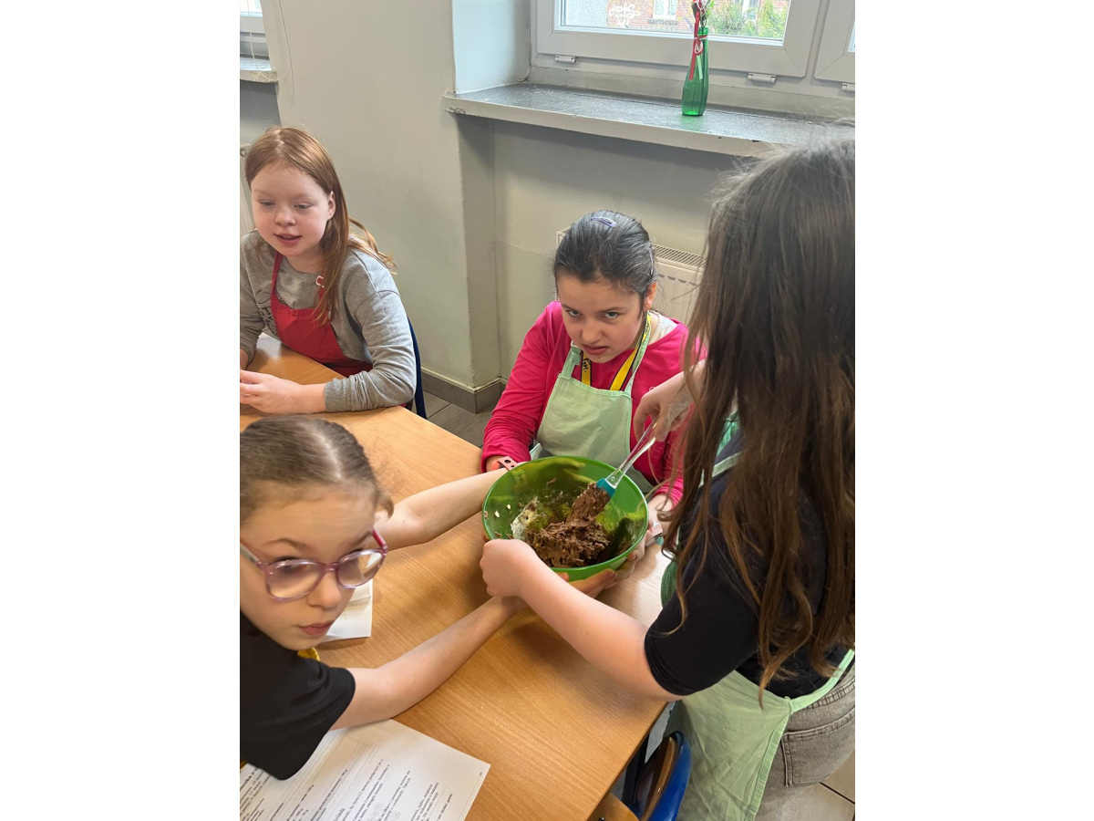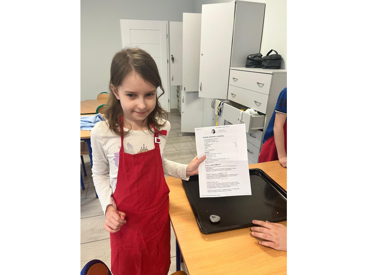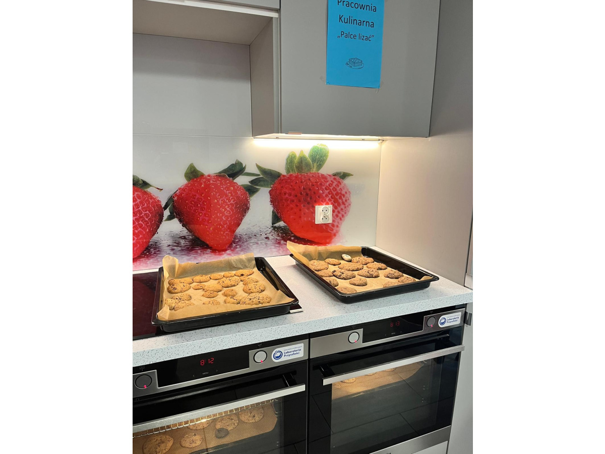 Podczas zajęć uczniowie poznali przepis na pyszne ciasteczka z czekoladą. Każdy uczeń samodzielnie przygotował ciasto, formował ciasteczka i wykładał je na blachę. Efektem warsztatów były przepyszne, chrupiące ciasteczka czekoladowe, które uczniowie z wielką radością zabrali do domu, aby podzielić się nimi z rodzinami.