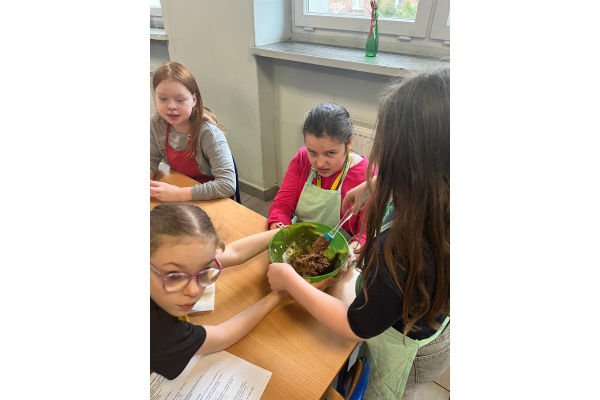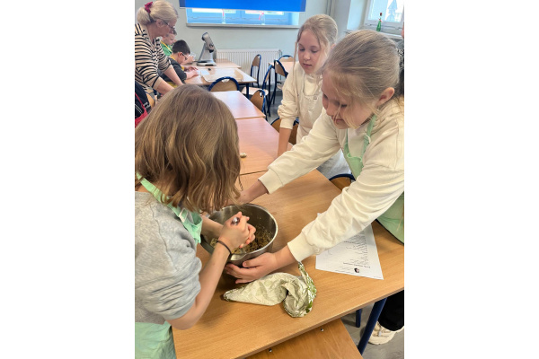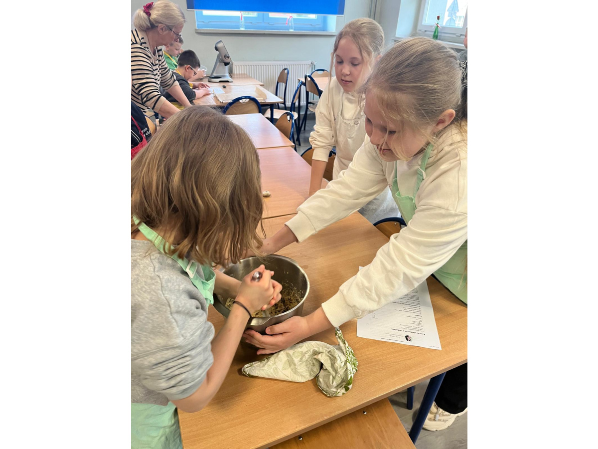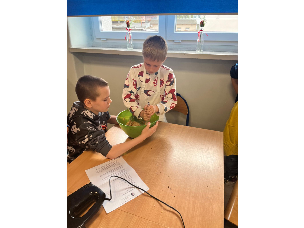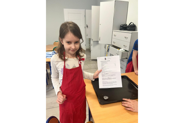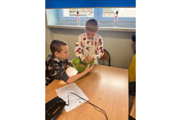 Podczas zajęć uczniowie poznali przepis na pyszne ciasteczka z czekoladą. Każdy uczeń samodzielnie przygotował ciasto, formował ciasteczka i wykładał je na blachę. Efektem warsztatów były przepyszne, chrupiące ciasteczka czekoladowe, które uczniowie z wielką radością zabrali do domu, aby podzielić się nimi z rodzinami.