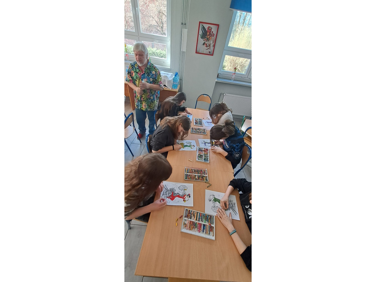 Uczniowie, którzy chętnie rozwijają swoje zdolności plastyczne wzięli udział w warsztatach, które w naszej szkole poprowadził Pan Waldemar Zyśk. Chętne osoby mogą rozwijać swoje pasje pod okiem pana Waldemara na zajęciach w MDK.