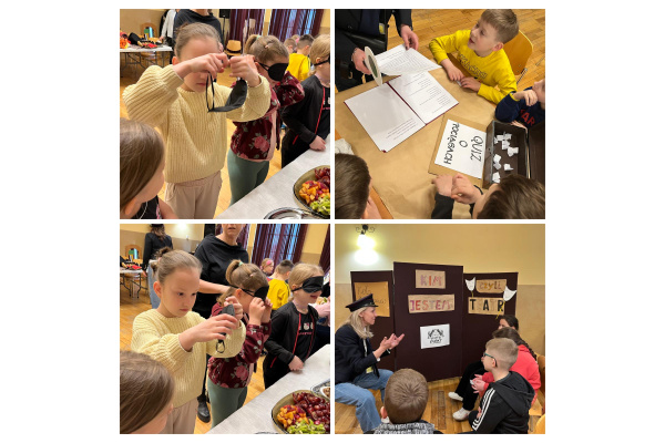 W pierwszej części wyjścia mieliśmy okazję zapoznać się z bazą Szkoły Podstawowej nr 53 działającej w ramach ośrodka. Dzieci mogły zobaczyć, jak wygląda nauka w warunkach w pełni dostosowanych do potrzeb i możliwości uczniów słabo widzących oraz niewidomych. Szczególnie interesujące były specjalnie przystosowane sale lekcyjne, pomoce dydaktyczne oraz metody pracy stosowane na co dzień w tej placówce. Następnie odbył się spacer po stacjach. Bardzo ważnym elementem wyjścia było doradztwo zawodowe – dzieci poznały zawód nauczyciela osób niewidomych i słabowidzących. Miały możliwość bezpośredniej rozmowy z nauczycielami pracującymi w ośrodku, zadawania pytań i poznania, na czym polega ta niezwykle odpowiedzialna i potrzebna praca.