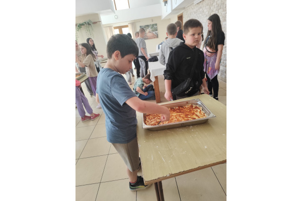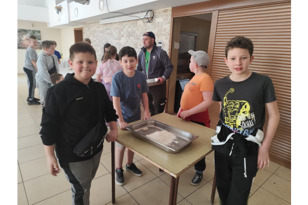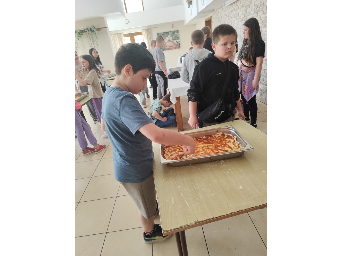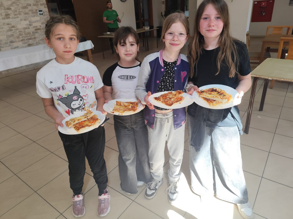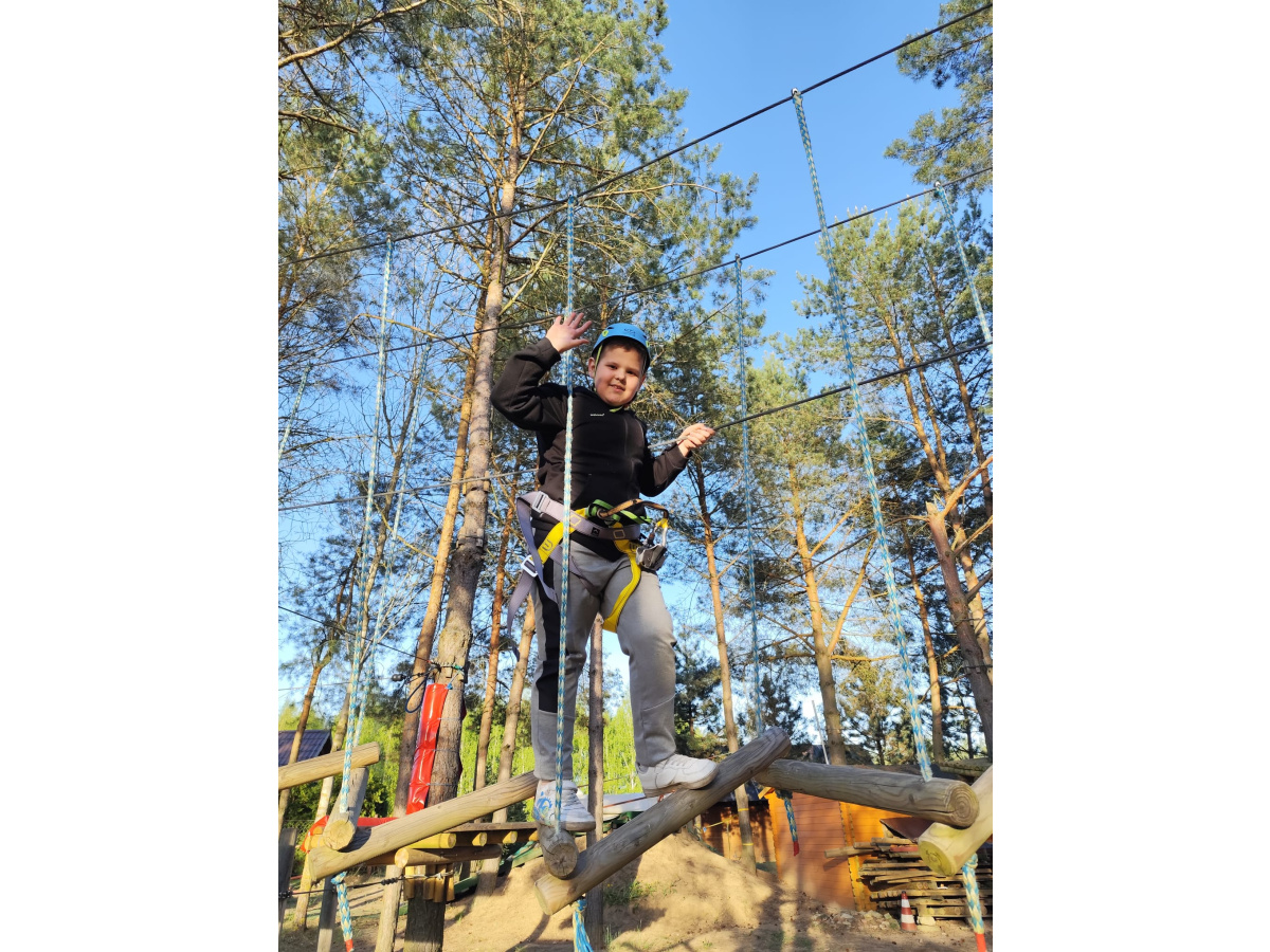 Kolejnym punktem wyjazdu był ośrodek w miejscowości Piła-Młyn. Czekało tam na dzieci wiele atrakcji . Uczniowie wykazali się niezwykłą sprawnością w parku linowym,zręcznością podczas laserowego paintballa i odwagą w czasie podchodów o zmierzchu., a także talentem kulinarnym i kreatywnością podczas samodzielnego robienia pizzy.