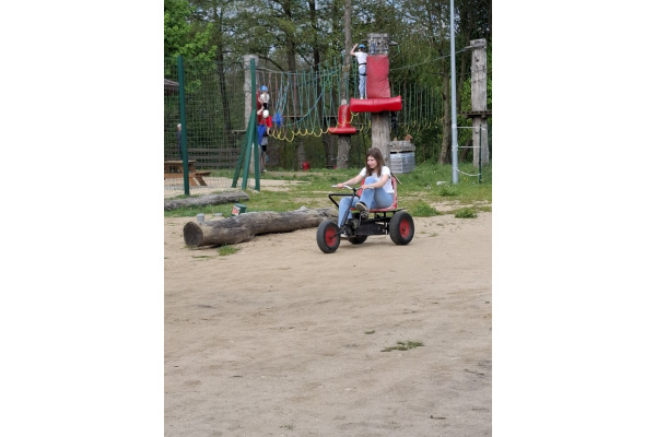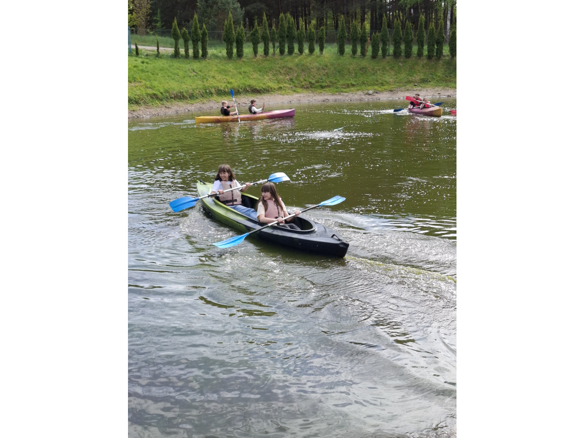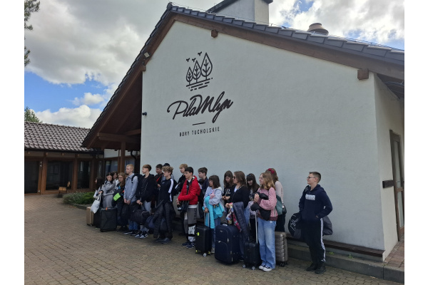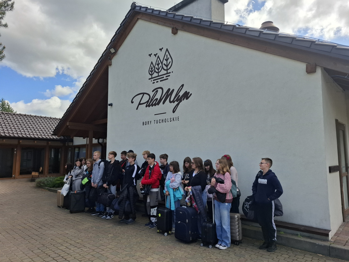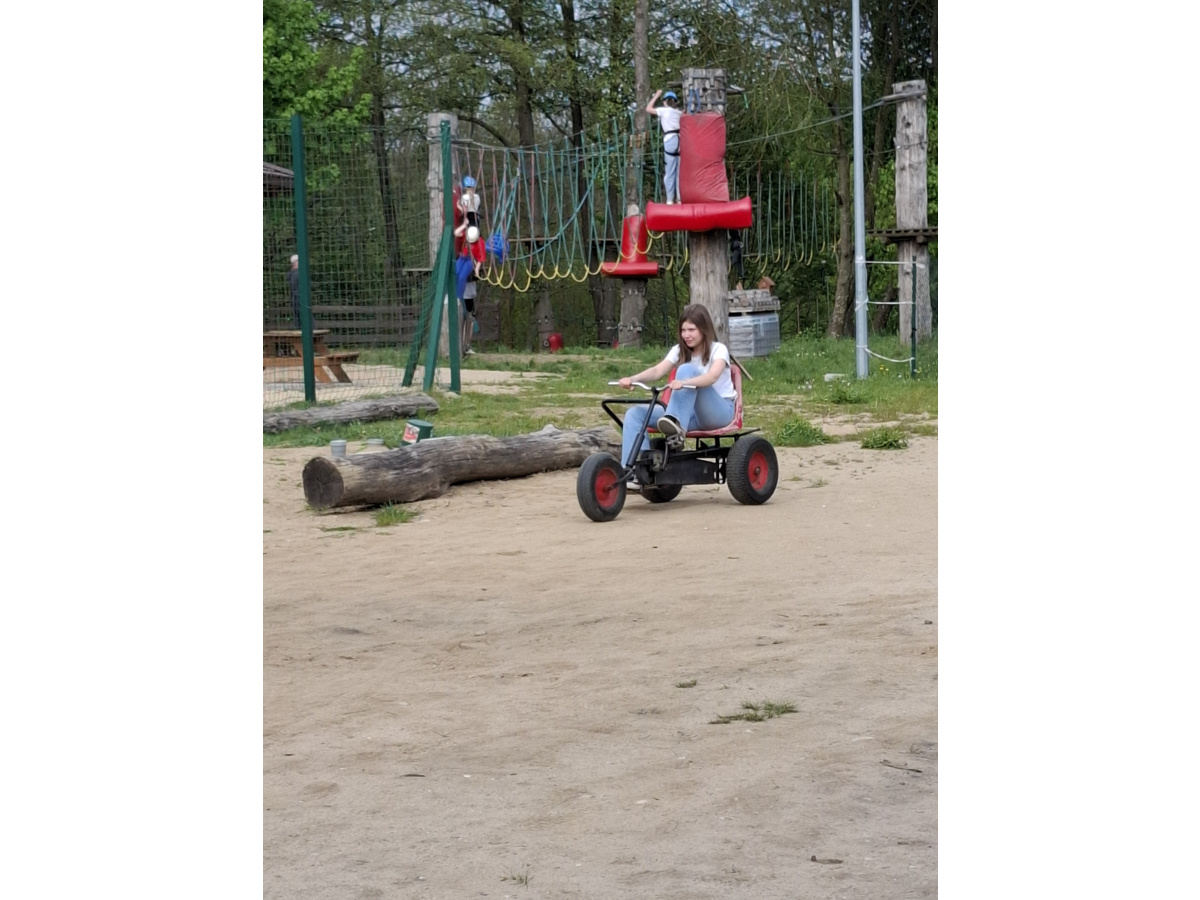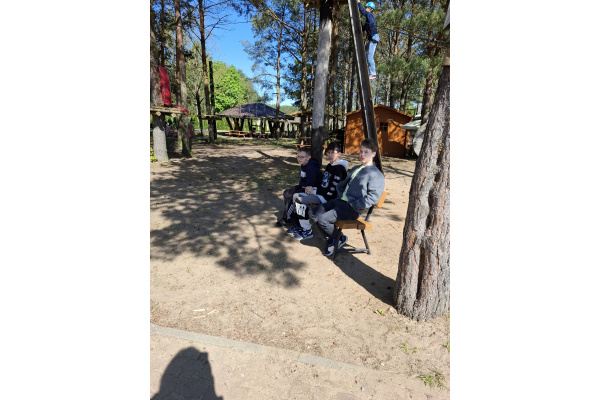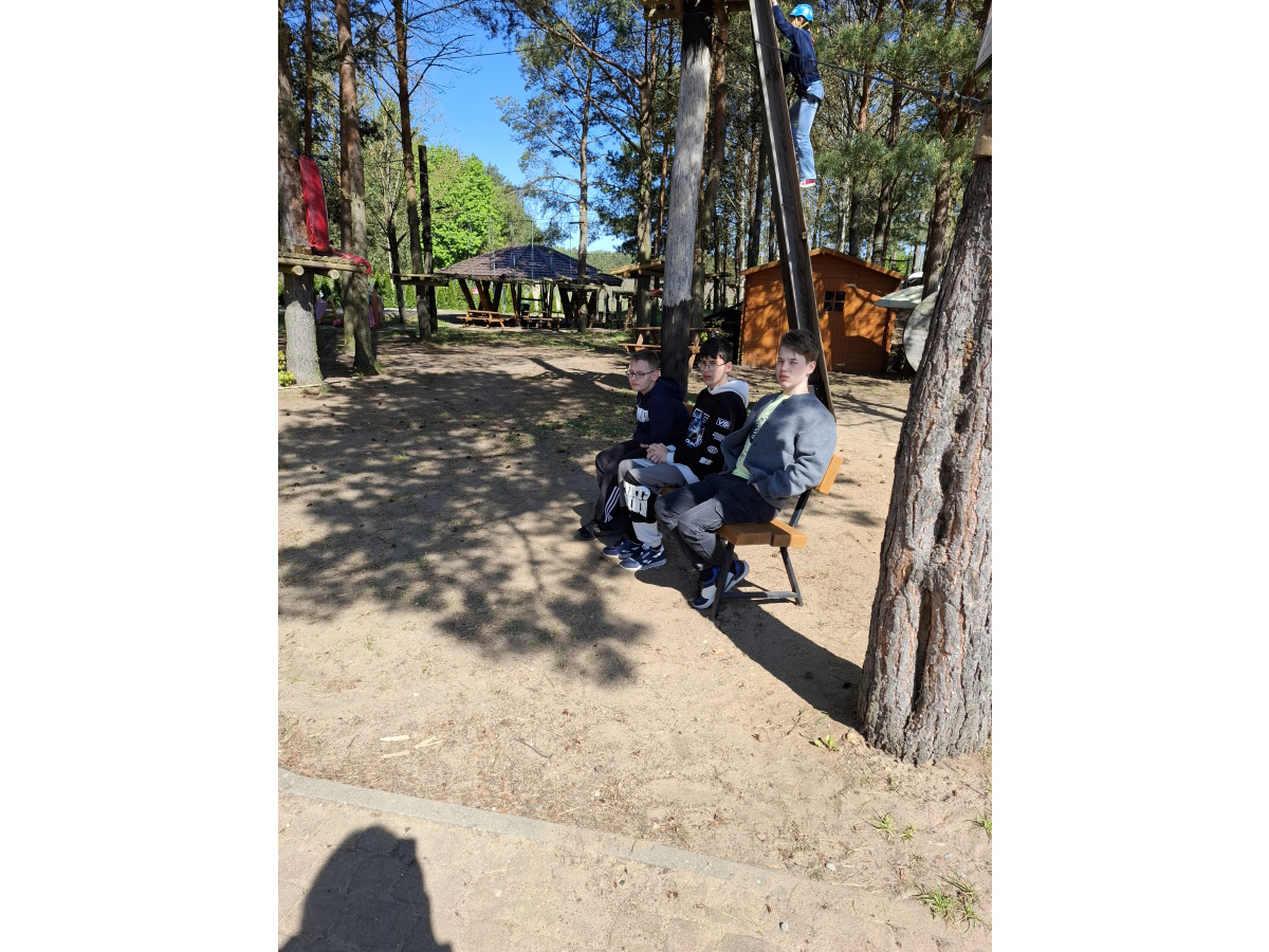 Uczniowie klasy 7b wyjechali w dniach 5-7 maja na wycieczkę do ośrodka Piła Młyn w Borach Tucholskich. Spędzili tam czas bardzo aktywnie i bardzo dobrze się bawili. Uczestniczyli w zajęciach sportowych (grali w siatkówkę, piłkę nożną i koszykówkę), pokonywali trudną trasę w parku linowym, jeździli gokartami, pływali kajakami. Adrenaliny dostarczyły wszystkim nocne podchody i paintball w lesie. Na koniec wycieczki zajadali się własnoręcznie przygotowaną pizzą.