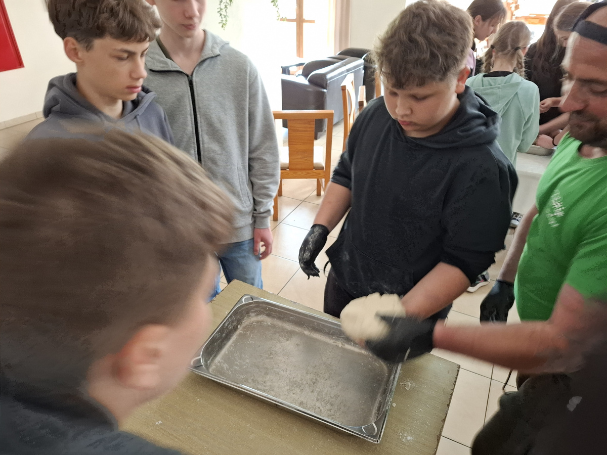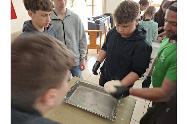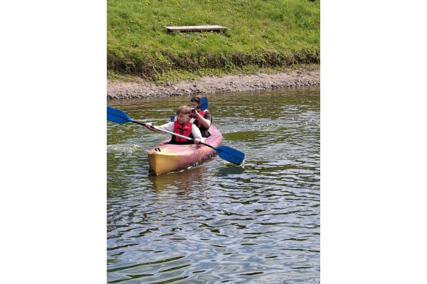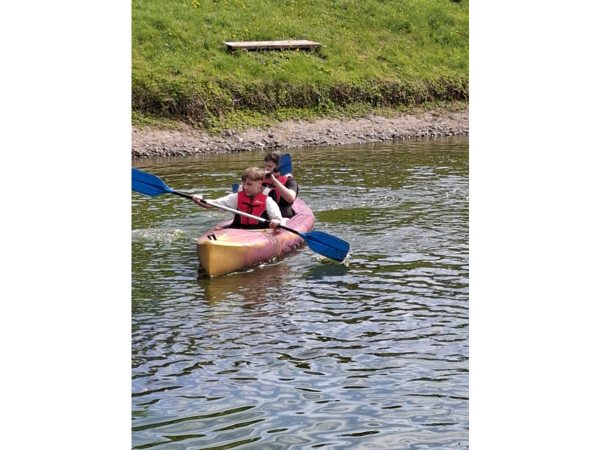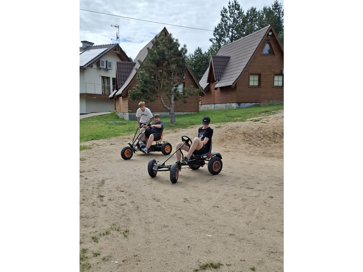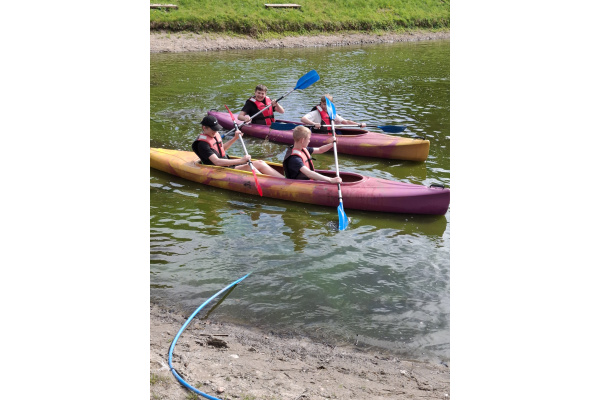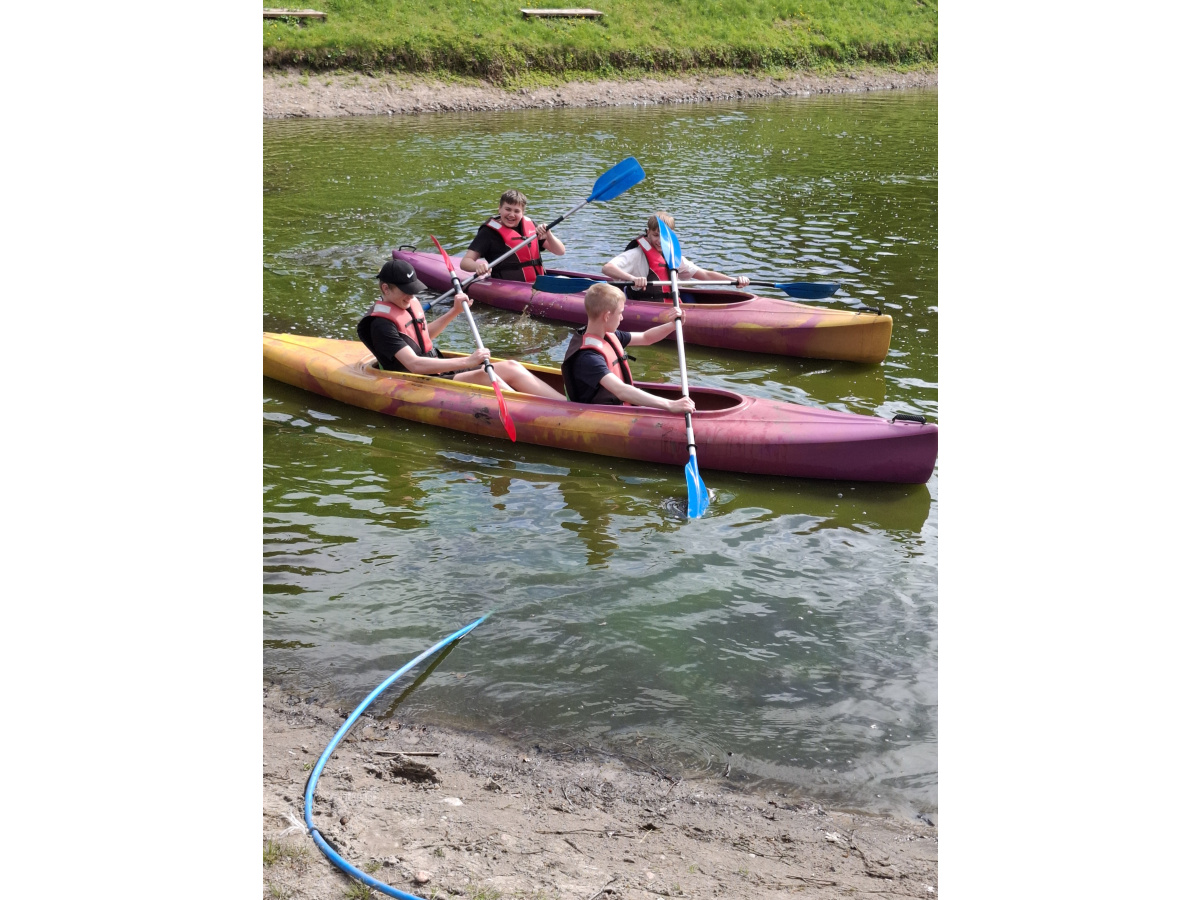 Uczniowie klasy 7b wyjechali w dniach 5-7 maja na wycieczkę do ośrodka Piła Młyn w Borach Tucholskich. Spędzili tam czas bardzo aktywnie i bardzo dobrze się bawili. Uczestniczyli w zajęciach sportowych (grali w siatkówkę, piłkę nożną i koszykówkę), pokonywali trudną trasę w parku linowym, jeździli gokartami, pływali kajakami. Adrenaliny dostarczyły wszystkim nocne podchody i paintball w lesie. Na koniec wycieczki zajadali się własnoręcznie przygotowaną pizzą.