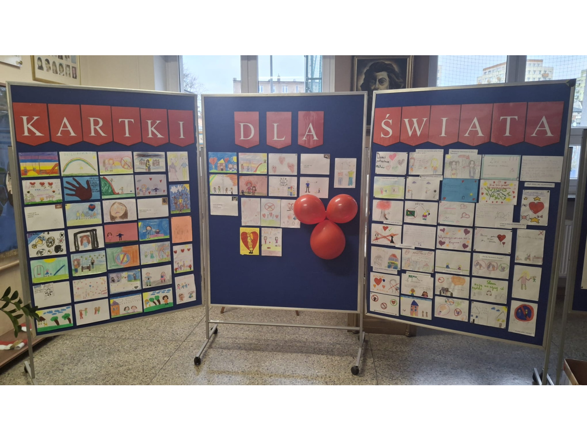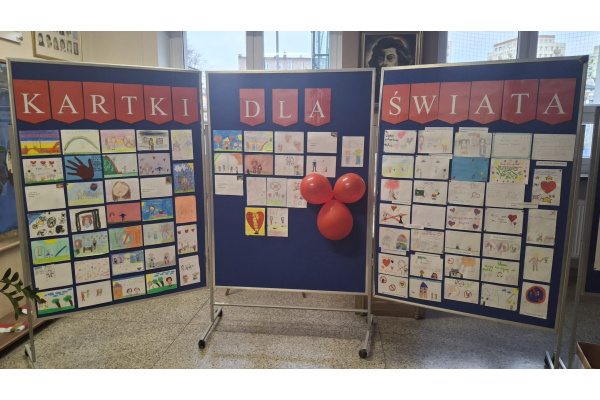Została stworzona galeria prac uczniów pt. "Kartki dla świata". Prace te zostały zaprezentowane rodzicom w dniu zebrań klasowych.