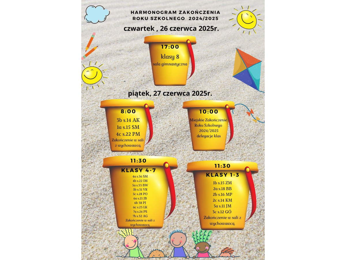 Harmonogram zakończenia roku szkolnego.