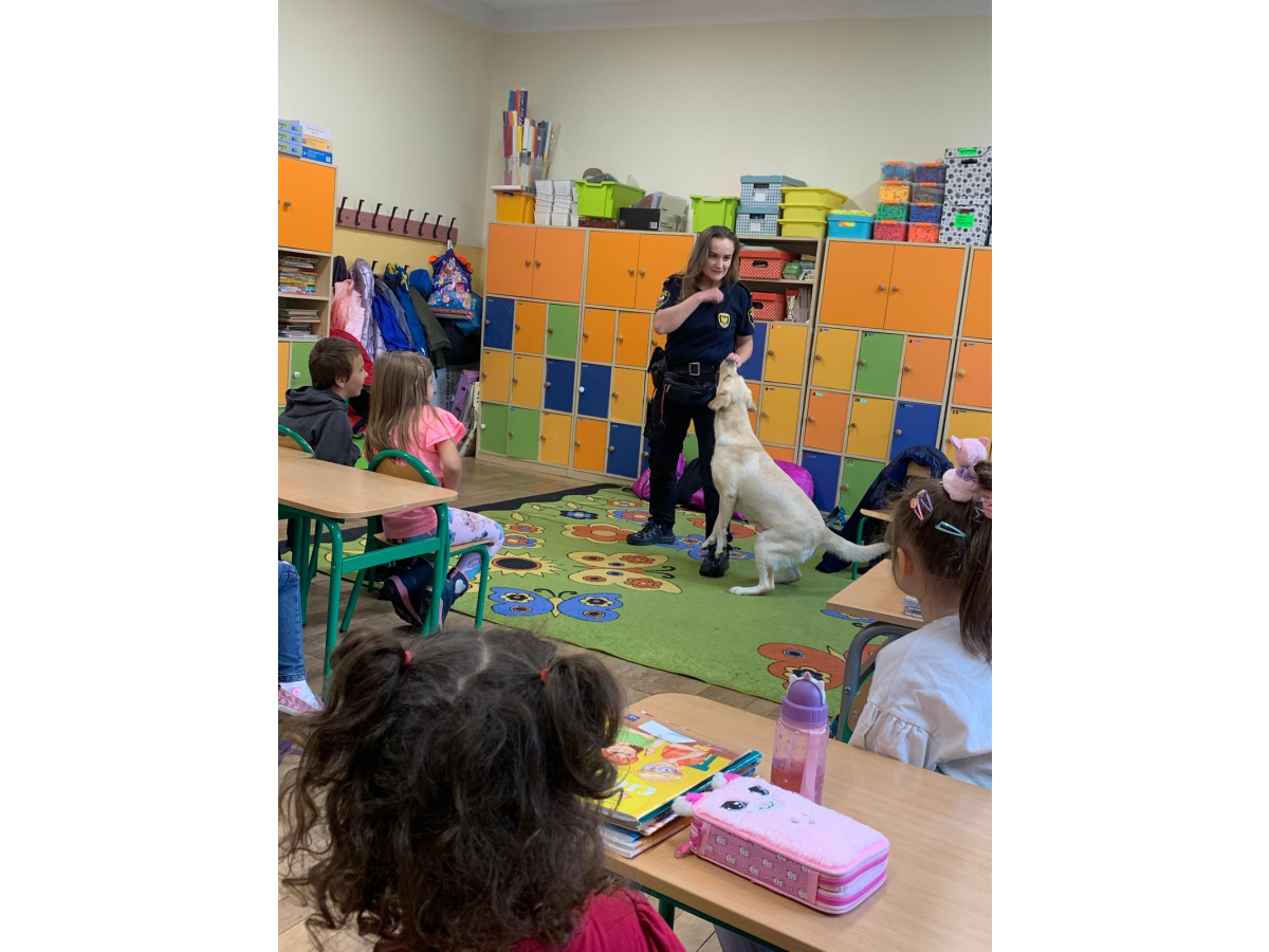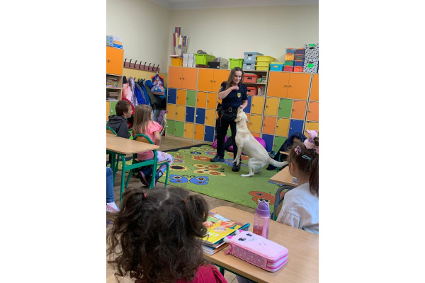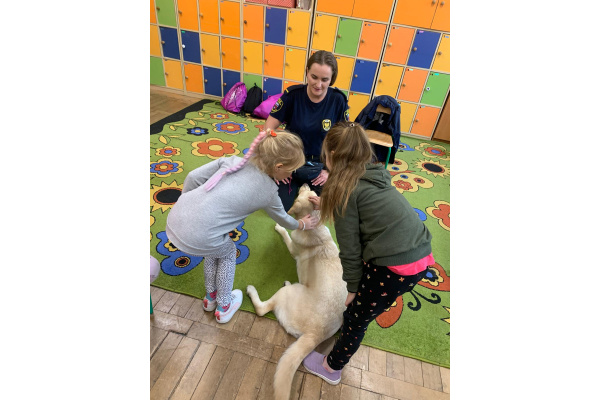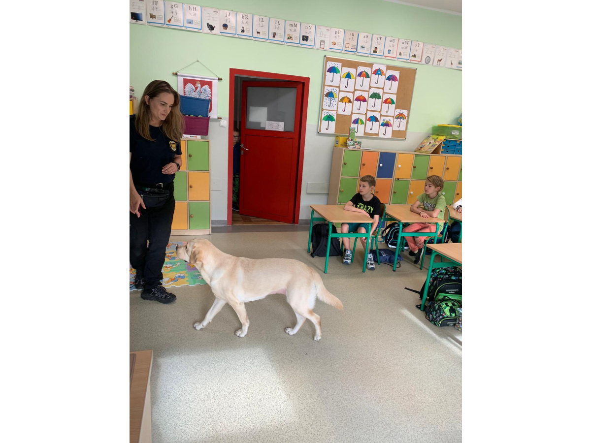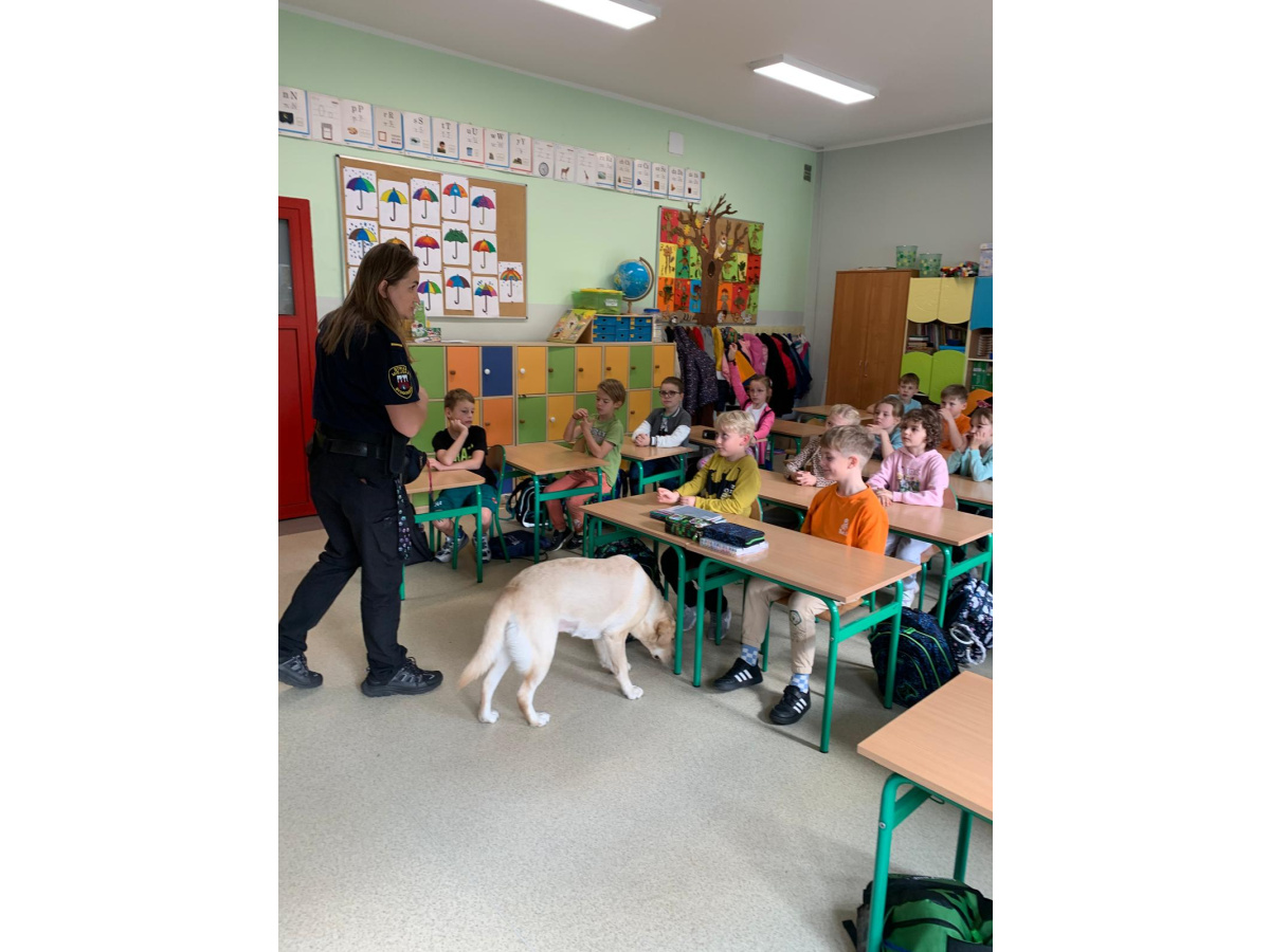 Labradorka LABI - razem ze swoją partnerką ze Straży Miejskiej gości na zajęciach w klasach 1-3. Labradorka, która ma na imię LABI jest psem terapeutycznym - uczy dzieci żeby ich kontakt z pieskami był bezpieczny. Żeby dzieci wiedziały jak się zachować w kontakcie z pieskiem: np. Czy zawsze można psa głaskać? Jak dbać o pieska? Jak sprawić mu radość? W naszej szkole wszyscy bardzo lubimy LABI, znają ją młodsi i starsi. Zawsze wywołuje uśmiechy na twarzach i wnosi mnóstwo radości.
